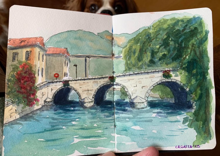 Crikvenica’s White Bridge is near Crkva Uznesenja Blažene Djevice Marije, (Church of the Assumption of Blessed Virgin Mary). It gracefully arches over the Dubračina River. Crikvenica has a similarly arched red bridge over the Dubračina that’s also pedestrian only.